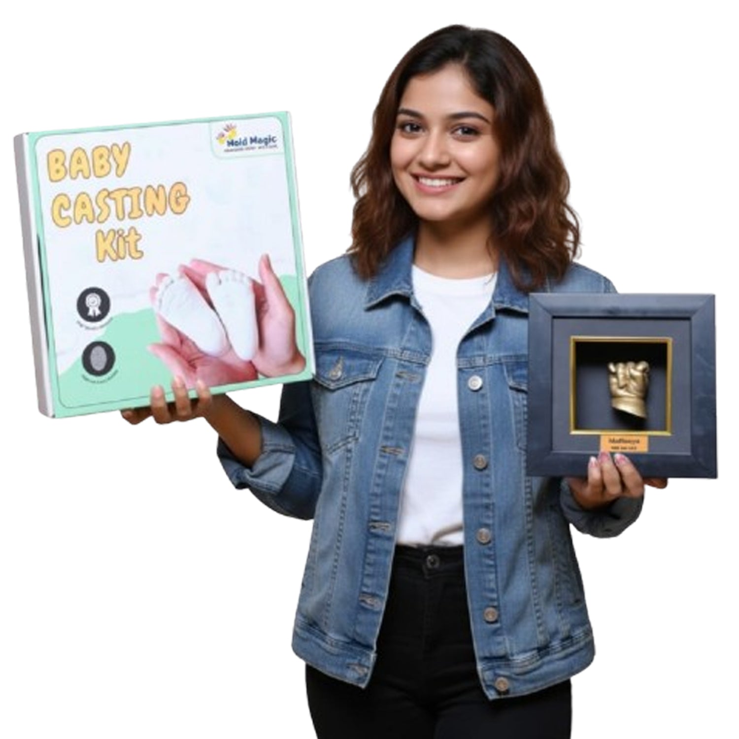Create a timeless keepsake of your baby’s tiny hand with the Mold Magic Baby Hand Casting Kit. Designed specially for babies up to 1 year old, this kit helps parents capture every adorable detail—wrinkles, folds, fingernails, and all—right from the comfort of home. The kit comes complete with a luxurious premium display frame, turning your baby’s cast into a beautiful work of art you can treasure forever.